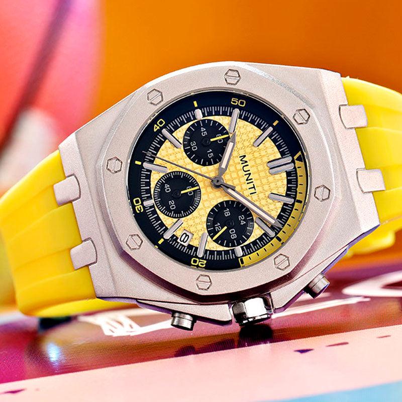 O Minuti MM12 Men's Watch is a versatile accessory that can be combined with different types of clothes and accessories. It is ideal for wearing with sports and casual clothes, such as t-shirts, shorts and sneakers. Furthermore, its modern and bold design also allows it to be used in informal and casual events.